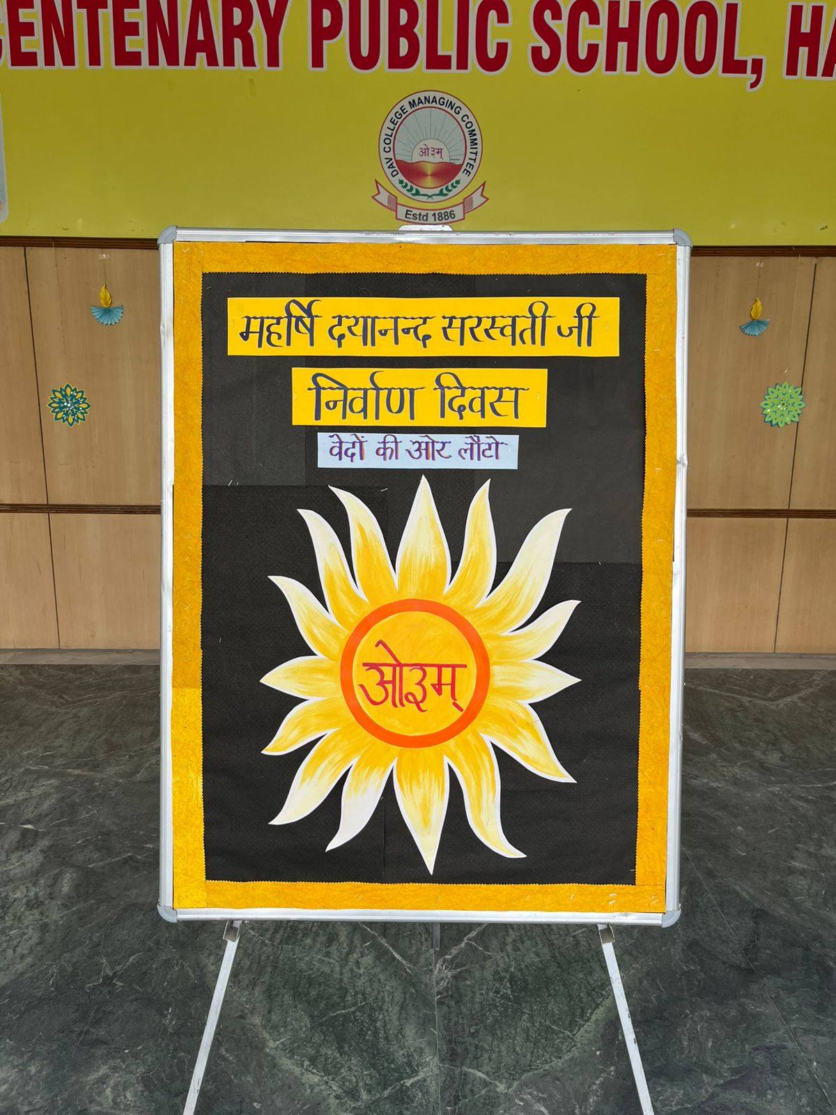 डी ए वी हल्द्वानी की प्रार्थना सभा में आज स्वामी दयानंद सरस्वती जी का निर्वाण दिवस मनाया गया। इस अवसर पर विभिन्न कार्यक्रम आयोजित किए गए, जिनमें छात्रों ने बढ़-चढ़कर भाग लिया। स्वामी जी के जीवन और उनके द्वारा समाज के लिए किए गए योगदान पर प्रकाश डाला गया और उनके आदर्शों को अपनाने का संकल्प लिया गया। विद्यालय परिवार ने इस अवसर पर स्वामी जी को श्रद्धांजलि अर्पित की।